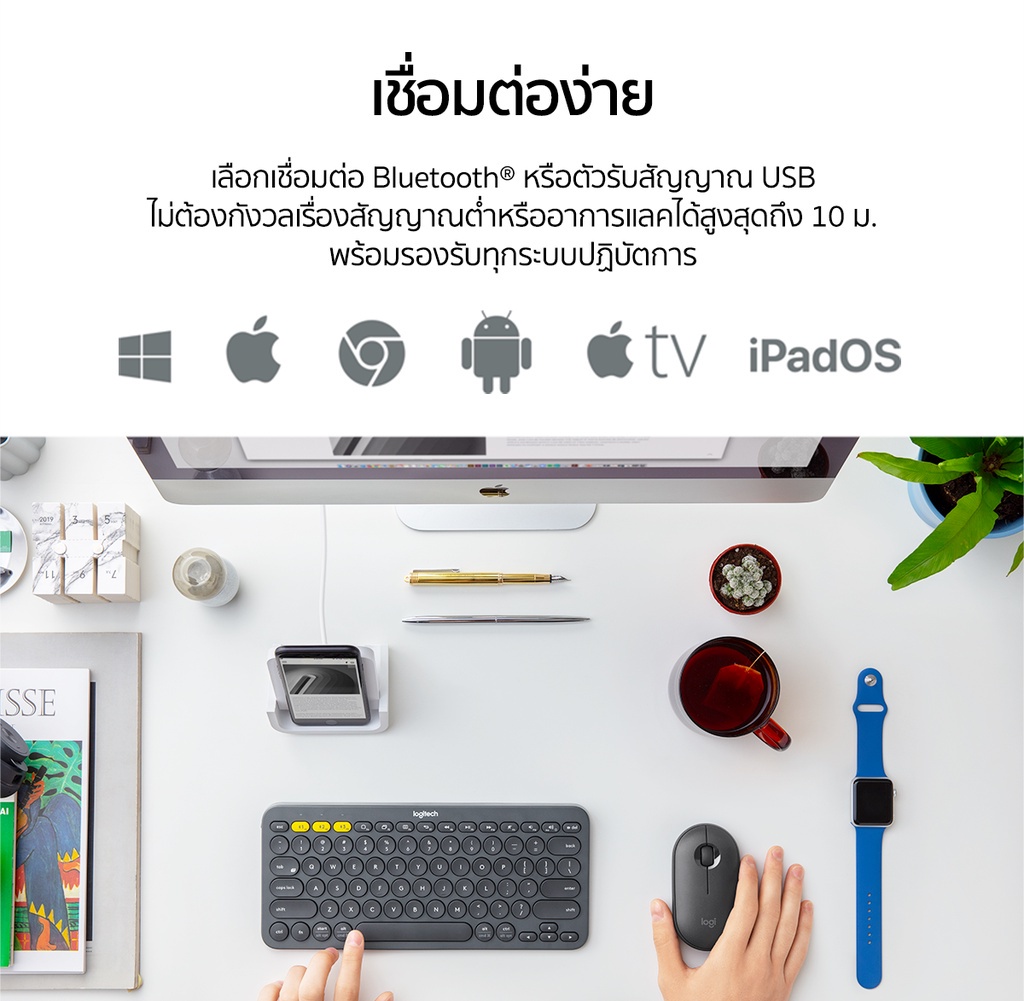 เทคโนโลยีไร้สาย: ตัวรับสัญญาณ Logitech Receiver หรือเทคโนโลยี Bluetooth พลังงานต่ำ