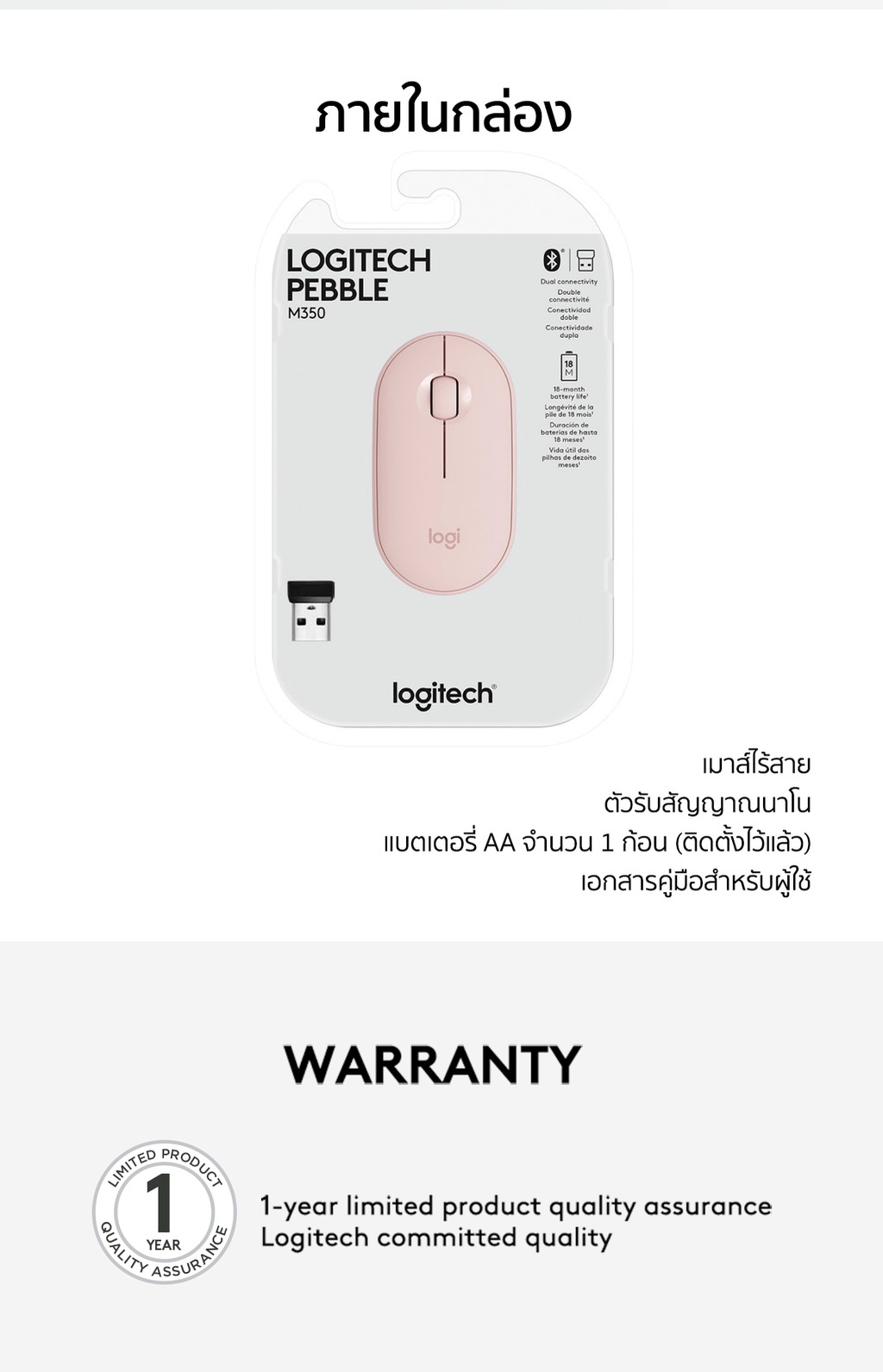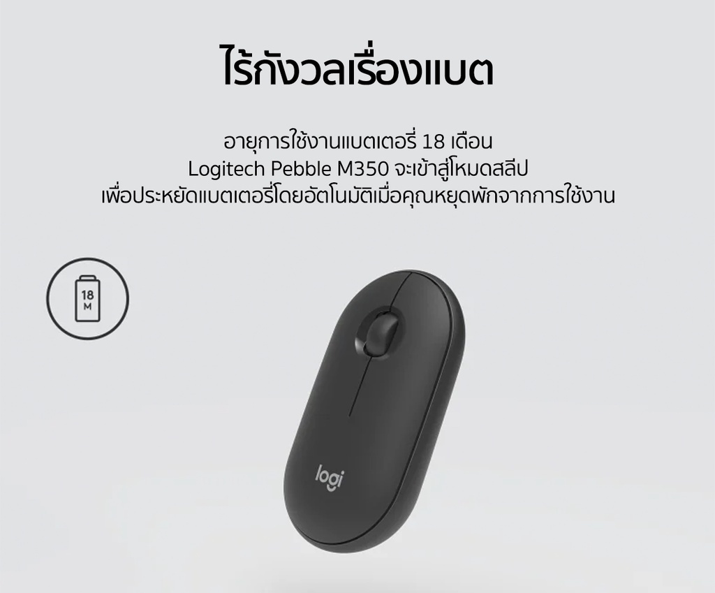 Logitech Pebble ใช้พลังงานได้นานถึง 18 เดือนด้วยแบตเตอรี่ AA เพียงก้อนเดียว*